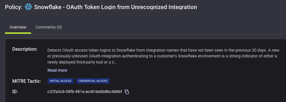 The Risk Third-party integrations authenticating via OAuth can go unmonitored if the authorizing integration is unknown or unexpected. Compromised integrations may use OAuth tokens to access Snowflake without triggering standard credential alerts.