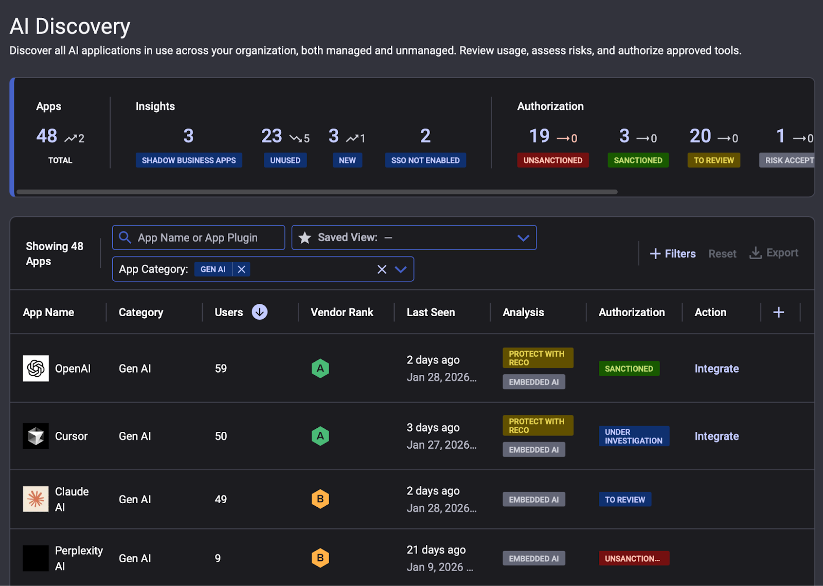 Reco's shadow AI discovery feature helps security teams identify unsanctioned AI tools across your environment, so you can get ahead of the next Clawdbot before it lands on your network.