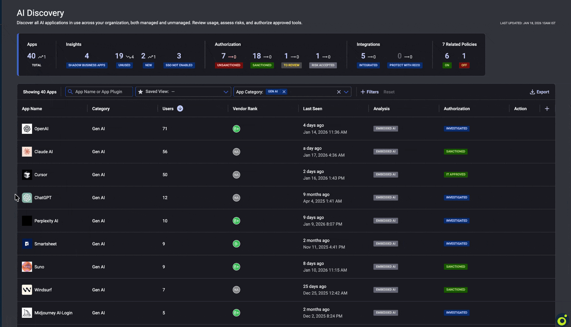 When an employee grants an AI tool access, the connection becomes visible within minutes, along with insight into the corporate data the tool can access. Instead of reporting “47 tools discovered,” security teams can report “47 tools with access to customer PII, representing $X in exposure.” This shifts discovery from raw counts to quantified risk aligned with board expectations.