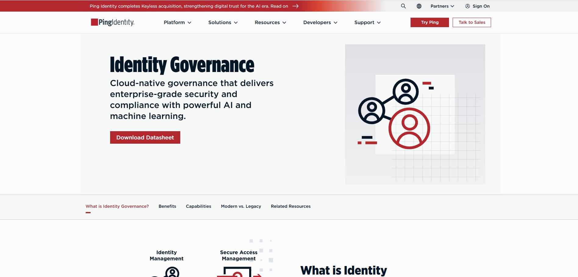 Ping Identity Governance is a cloud-native identity governance solution that provides visibility into who has access to what, automates access reviews and certification campaigns, and supports lifecycle actions such as provisioning and deprovisioning in line with compliance policies. It uses AI and machine learning to analyze entitlements, simplify access decisions, and help ensure that user access is appropriate and continuously reviewed.